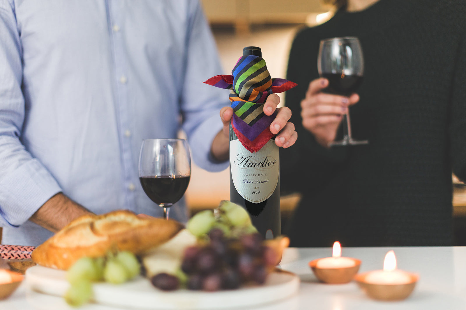 My PrimPour drape makes my bottle of wine look handsome. At the same time it keeps the wine from soiling the bottle and wherever you place your bottle after pouring. So simple to use!